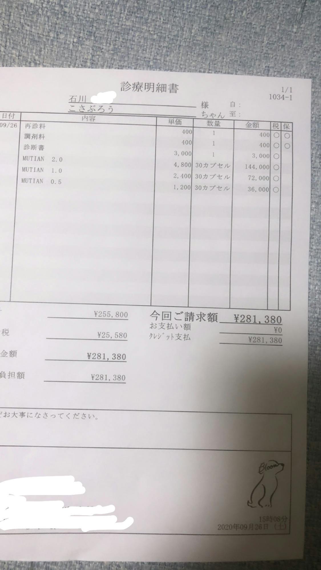 ただそのムティアンが日本未認可なため一錠8700円とゆう高額な薬です。(体重が増えたらどんどん金額があがります)