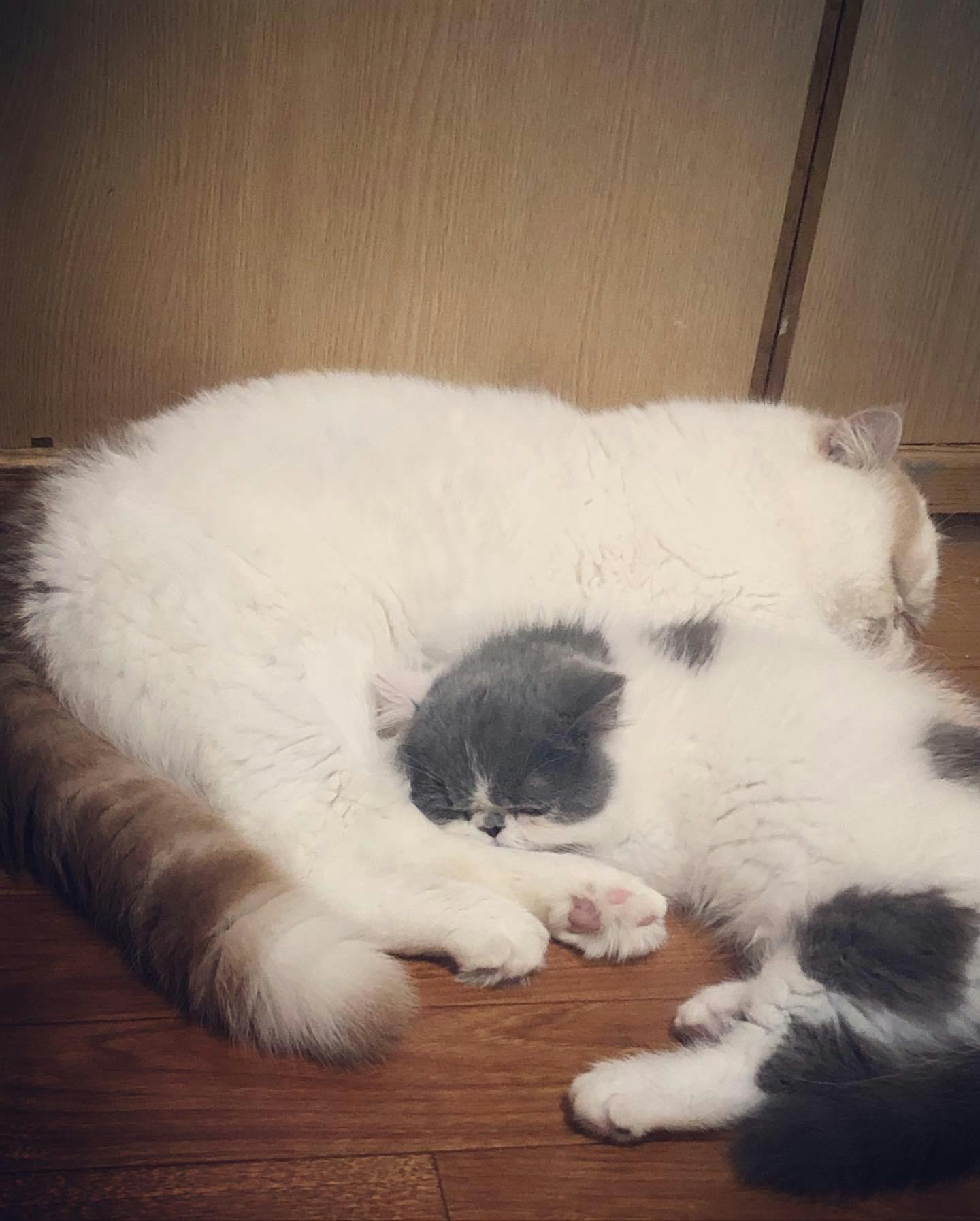 小三郎との出会いは、先住猫小次郎がいるんですが小次郎のお母さんが赤ちゃんを産んだとブリーダーさんから連絡貰い、一目惚れ!小次郎にも兄弟が欲しいなあと思っていたのでブリーダーさんから譲渡してもらいました。