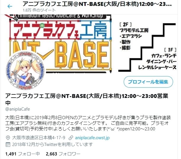 大阪/日本橋にある「アニプラカフェ工房NT-BASE」と申します