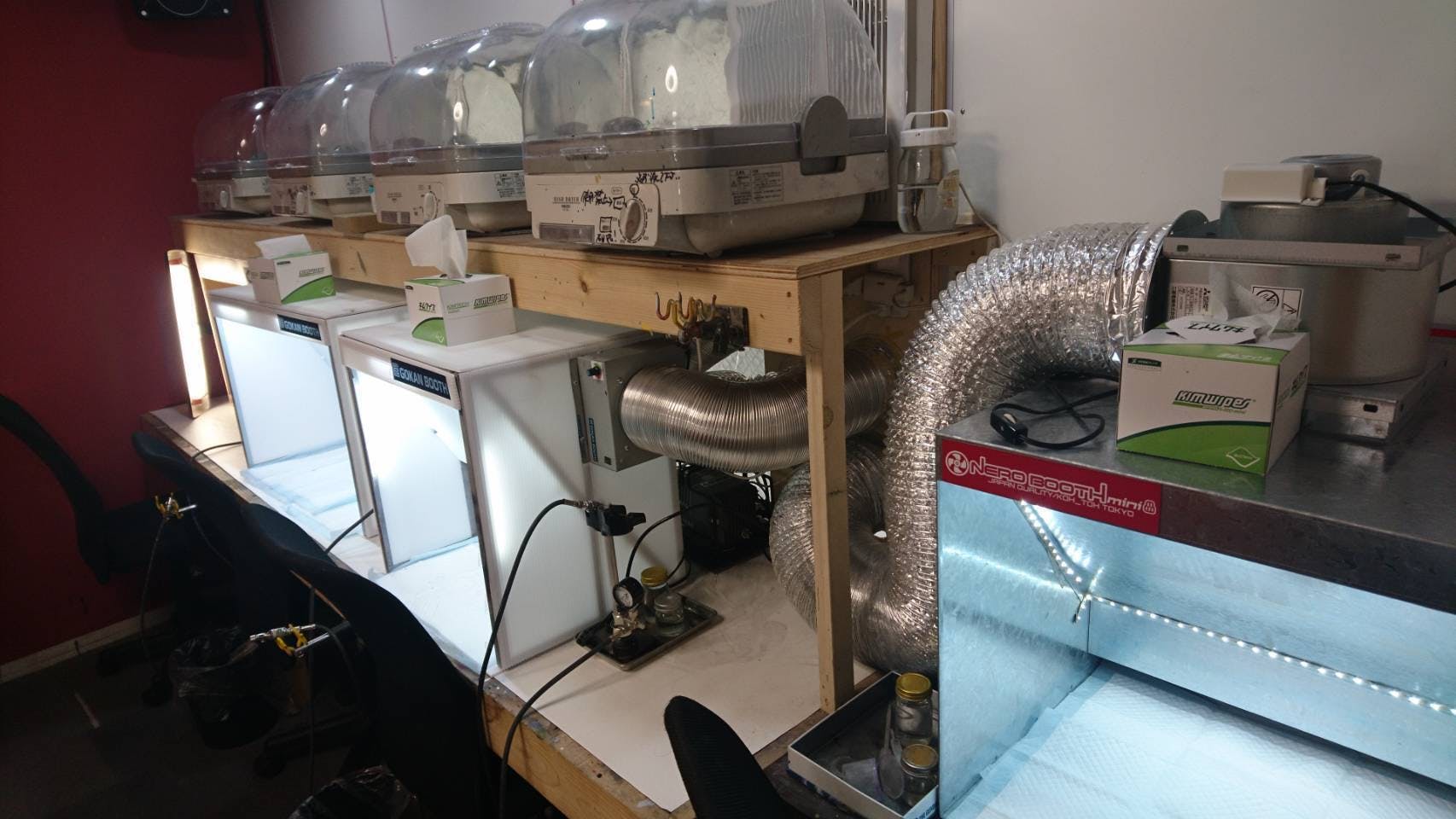 現在は2F製作スペースは、塗装ブース4席、製作スペース14席で運営しております。塗装ブース4台と2台の換気扇を利用して空気循環を行っておりますが、座席間隔をするためにも座席数の削減を行う予定です。