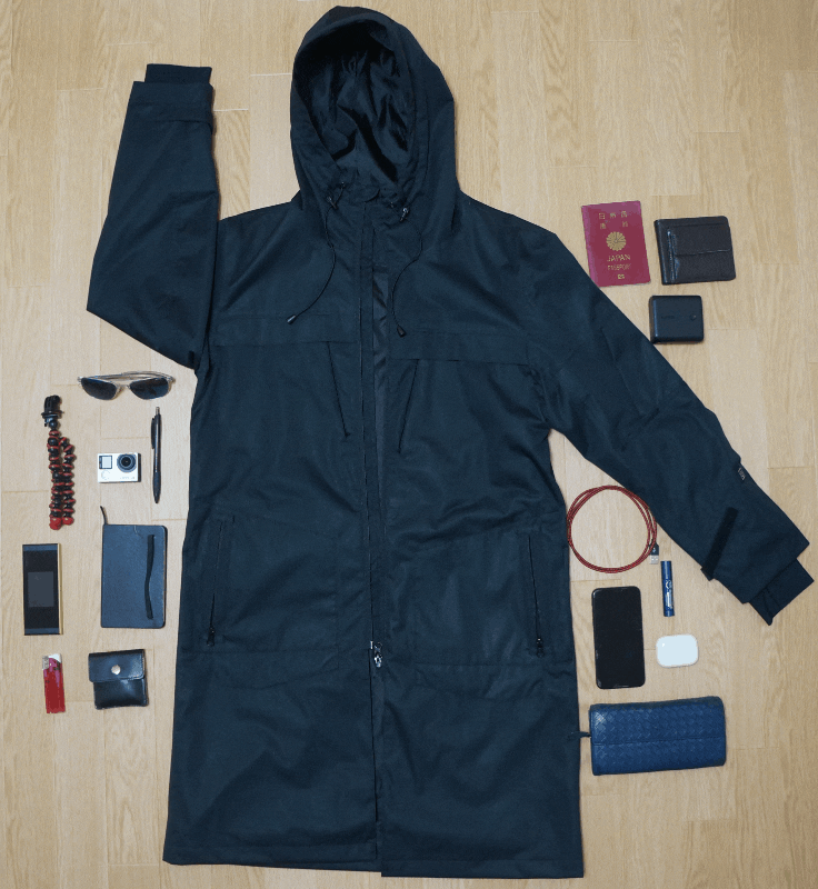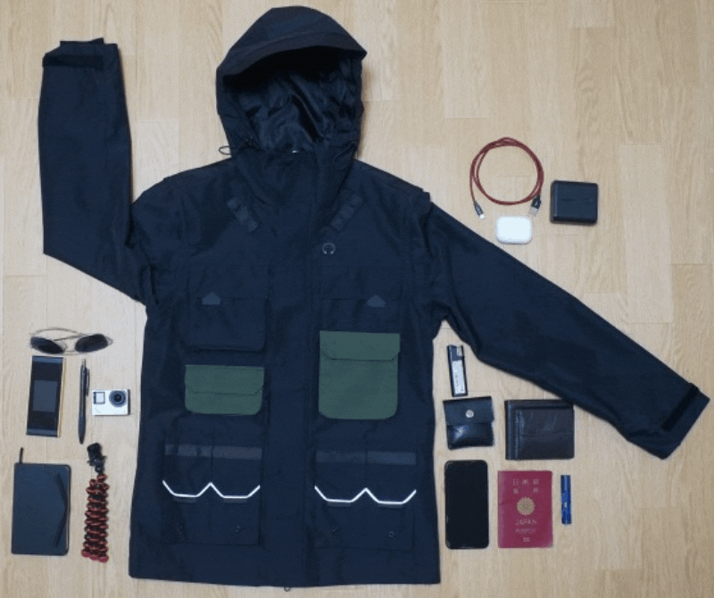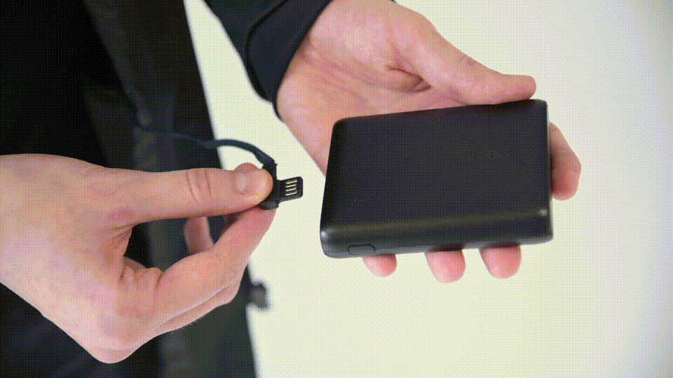 ジャケットに内蔵されているUSBケーブルは一般的なすべてのモバイルバッテリーに対応しています。