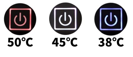 ③ワンタッチで38℃〜50℃まで3段階の温度調節が可能。