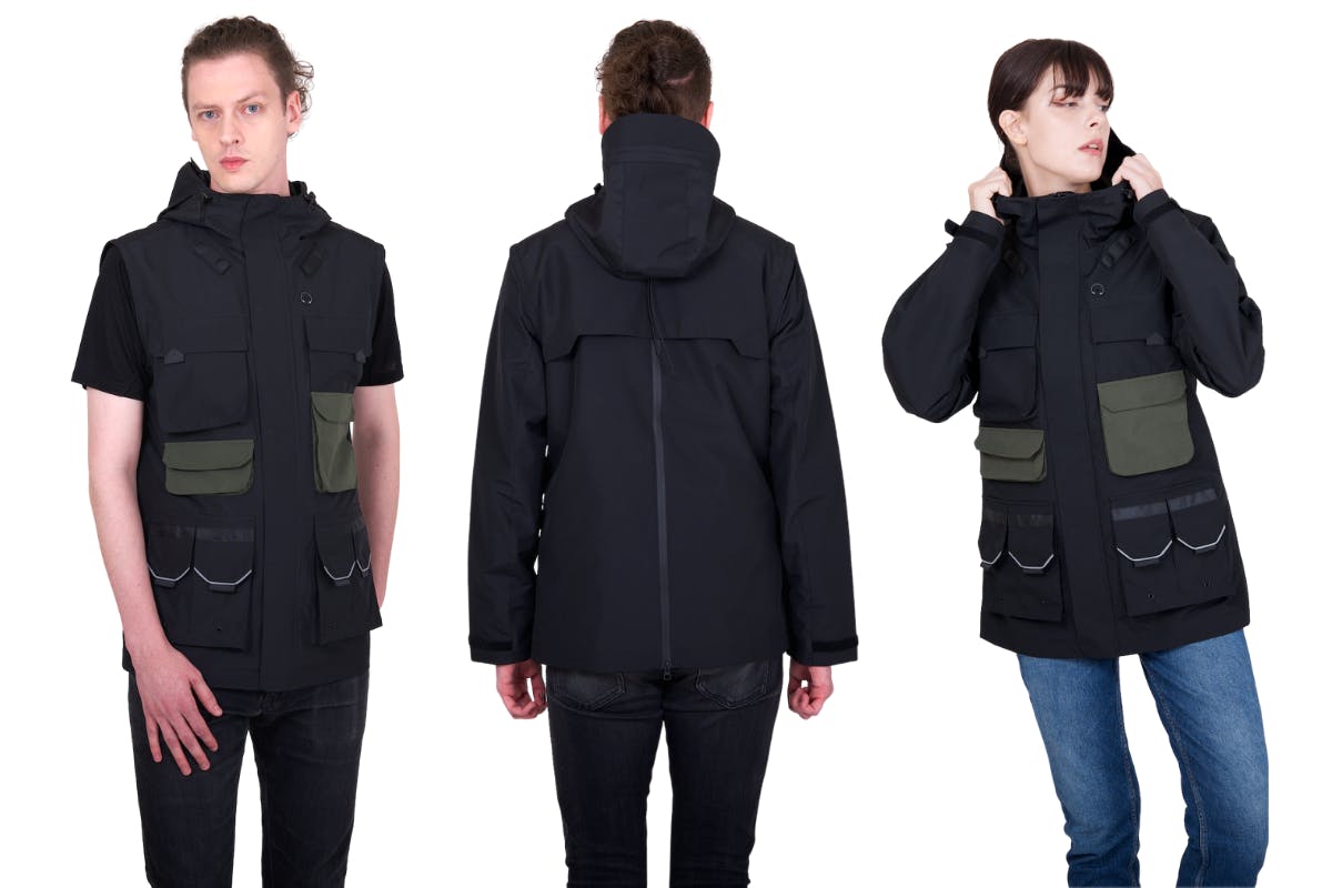 袖の取り外しや、背中の開閉も可能で、春や秋の不安定な気候の変化にも対応できます。
