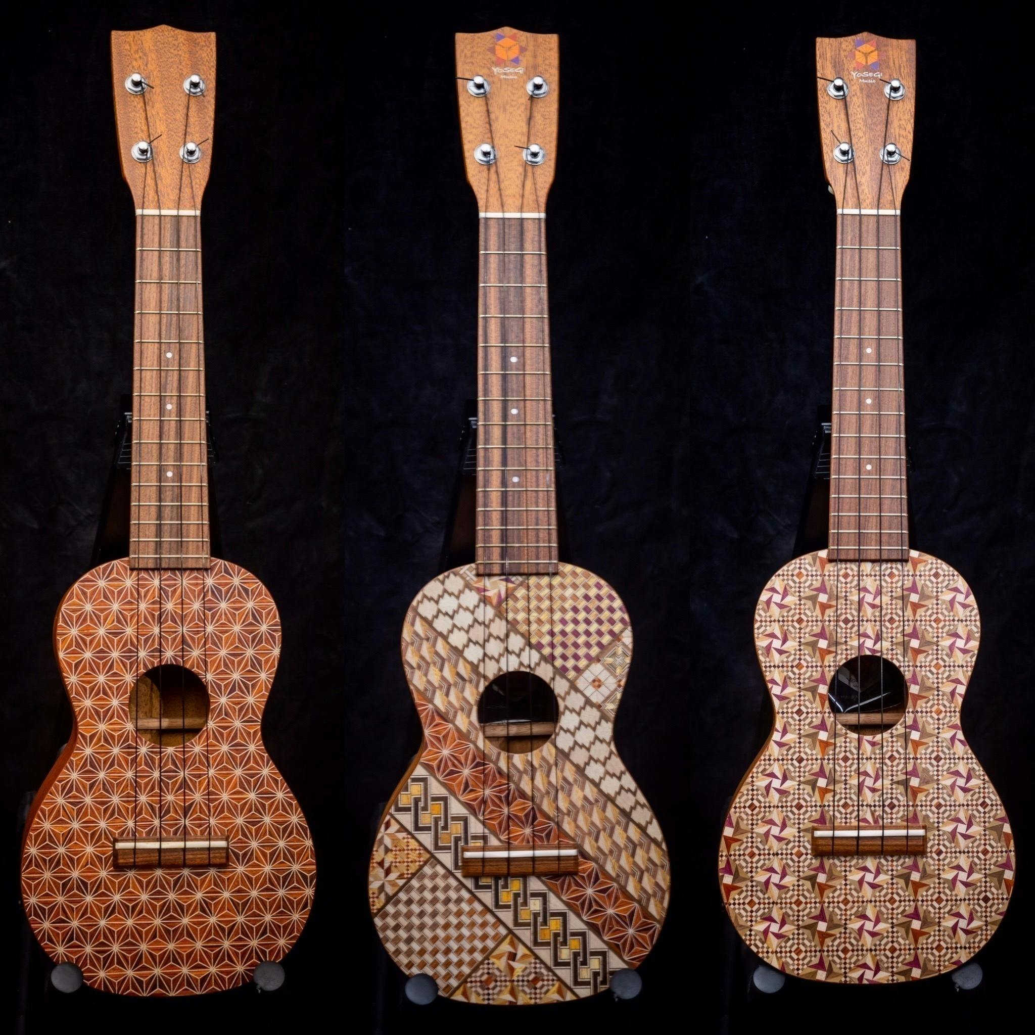 赤麻の葉柄、小寄木柄、Tokyo 2020 Limited Edition : Three designs of Yosegi Ukuleles