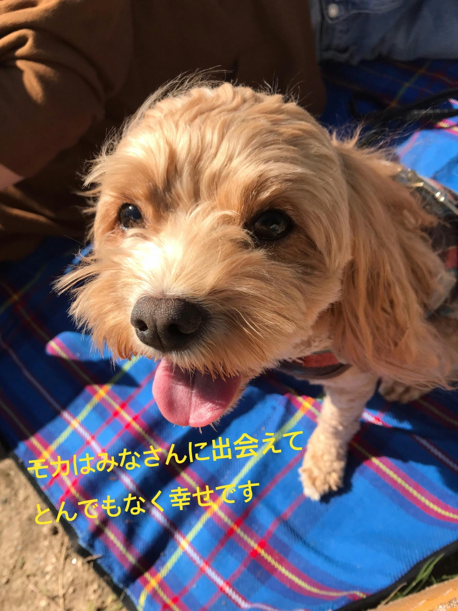 性格は好奇心旺盛なのに臆病!お友達ワンコがいると喜んで寄っていきお尻を匂うくせに寄ってこられるとしっぽを丸めて飼い主の私に抱っこをせがむのです。こんなモカですが、我が家にはとんでもなく大切な家族です。