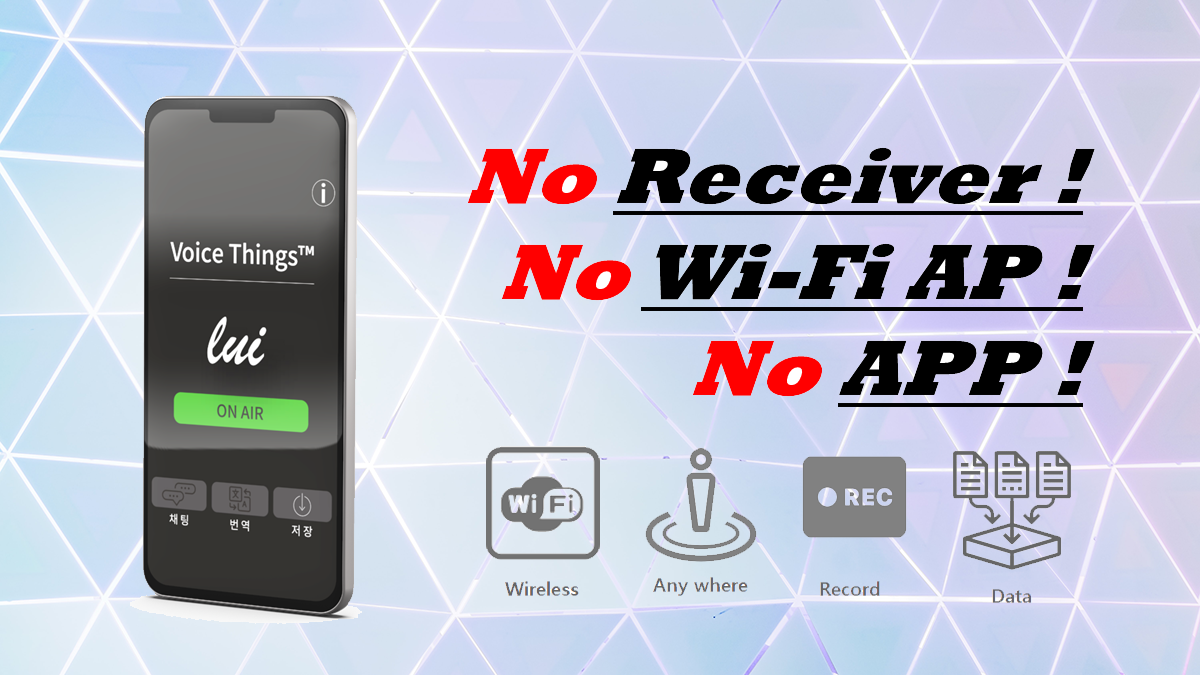 講義・講演などでは、参加者にその内容を効率よく伝える手段として無線受信機を積極的に活用しています。講演者のストーリーを伝えたり、コミュニケーションを図る上で必須のITソリューションです。しかしそれには、周囲の環境騒音、受け渡しする煩わしさ、不衛生的なヘッドセットの再利用、講演内容をデジタルデータとしてスマホに保存できないなどの技術的限界があります。