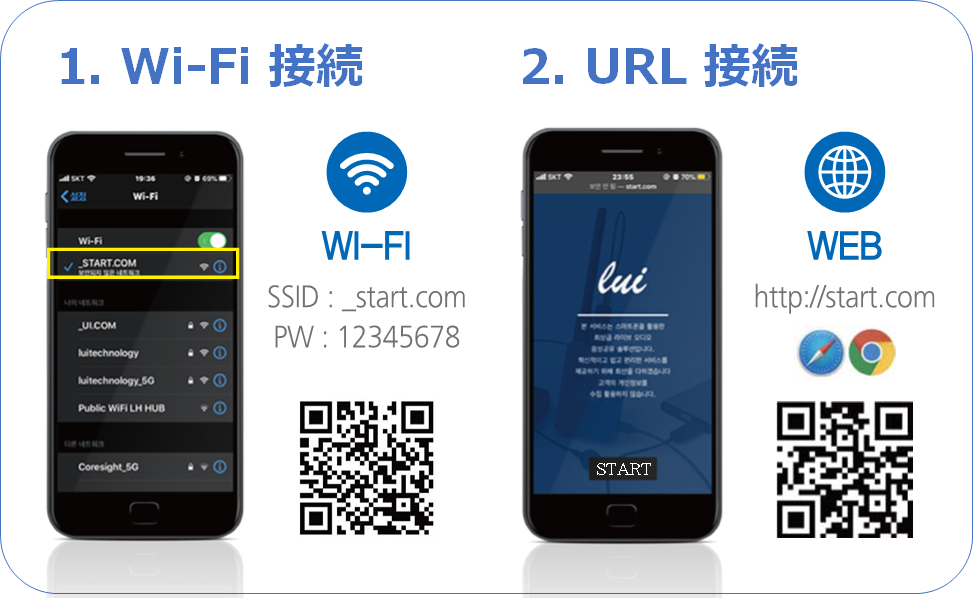 ④ ブラウザ(Chrome/Safari)を開いて、「http://start.com」に接続。