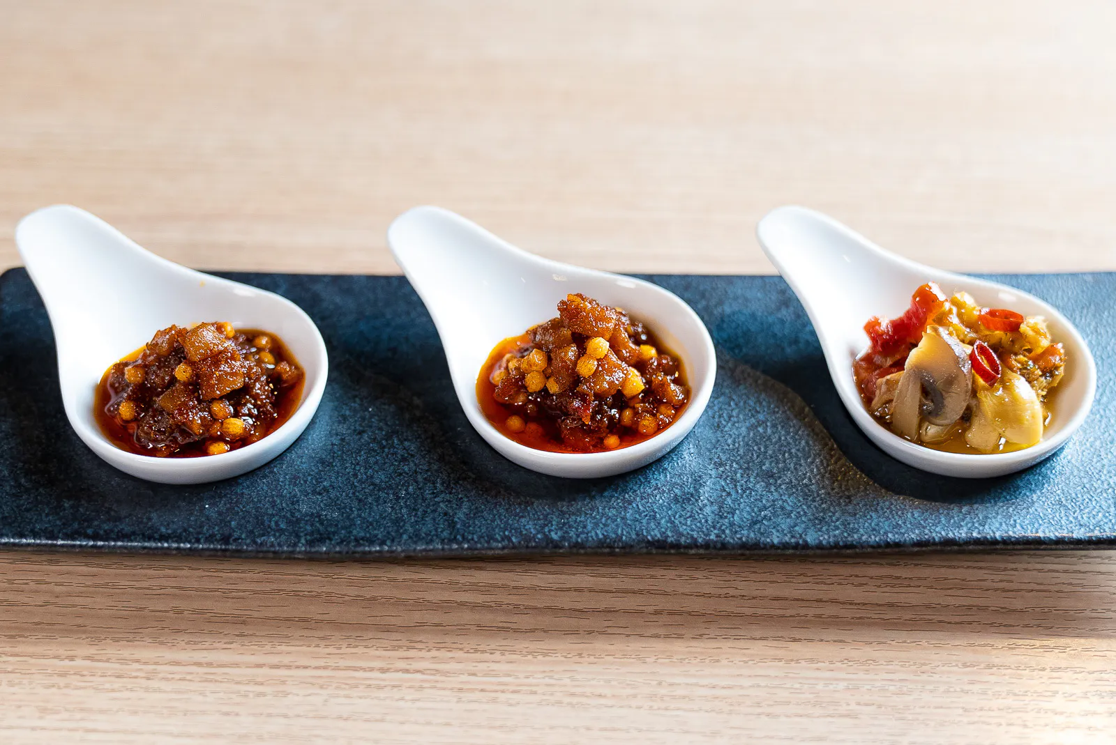 ①ほやを3つの味(ラー油、アヒージョ、シビ辛ラー油)で楽しめるほやギフトBOX