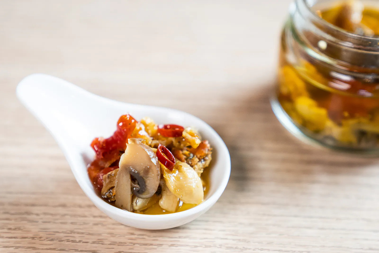 ほや料理専門店「まぼ屋」でも大人気の「ほやアヒージョ」を瓶詰にしました。たっぷりのほやもニンニクの香りで食べやすく、ブラウンマッシュルームやドライトマトなどの具材もぎっしり詰まっています。そのままでも、あたためても美味しく、茹でたパスタに絡めれば「ほやペペロンチーノ」、軽く焼いたバケッドを添えればお洒落なタパスにとしてお楽しみいただけます。