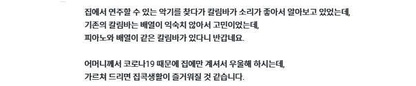 既存カリンバは、配列が慣れなくて悩みだったがピアノと配列が同じカリンバを見つけてうれしいです。母がコロナウイルスのために外に出られないので憂鬱なのに教え触れると隔離生活も楽しくなりそうです。