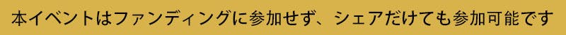 イベントへの参加方法:本プロジェクトの上部に有るFacebook,Twitter,Lineのタイムラインで共有し,そのリンクをコメント蘭に掲載または、メッセージにて送っていただける方.