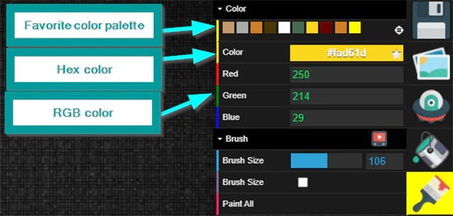正確なRGBカラーコードの入力や、カラーホイールからの選択。カラーピッカーを使ってモデルに既にペイントされている色を選択可能。少しの色の違いが「本物感」に影響する繊細なフィギュアも、満足できる仕上がりになります。