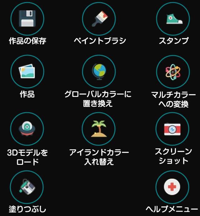 カラーやブラシサイズを選んで、拡大、縮小、視点の変更をしながら楽しく色付け!