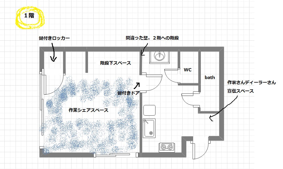 ・シェア作業部屋には作家さんの大切なもの、壊れ物、共有物を置く関係で使用は面談をして会員登録制とさせていただきます。都内で面談・鍵の開け方などの説明をさせていただいてからの使用となります。