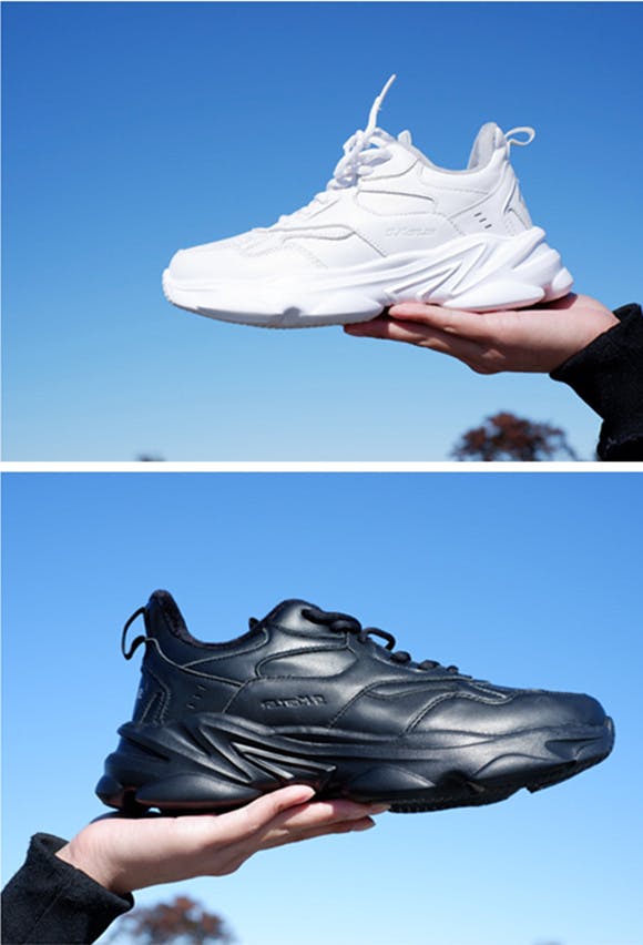 幅広のアッパーと分厚いソールを組み合わせたボリューミーなフォルムが存在感を抜群。デザインがシンプルでコーディネートに取り入れやすくなります。
