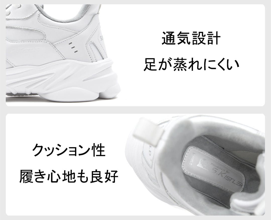 弾力性・反発性に優れたソールを採用したことで、膝への衝撃を吸収し、地面からの衝撃を和らげて、心地よく歩けます。柔らかいインソールが衝撃を吸収し疲労を軽減してくれます。
