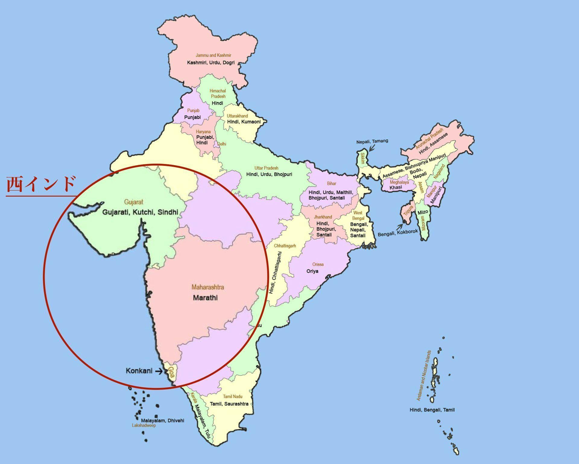 西インドには主にマハラシュトラ州、ゴア州とグジャラート州が含まれています。