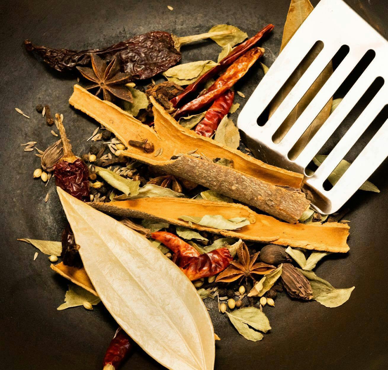 私の出身地のマハラシュトラ州は大きな海岸があるのでココナッツがいっぱい取れます。なのでカレーにもココナッツミルクやドライココナッツを使うことが多いです。それに、煎った胡麻やピーナッツをローストして上品な香りとコクをつけたりします。