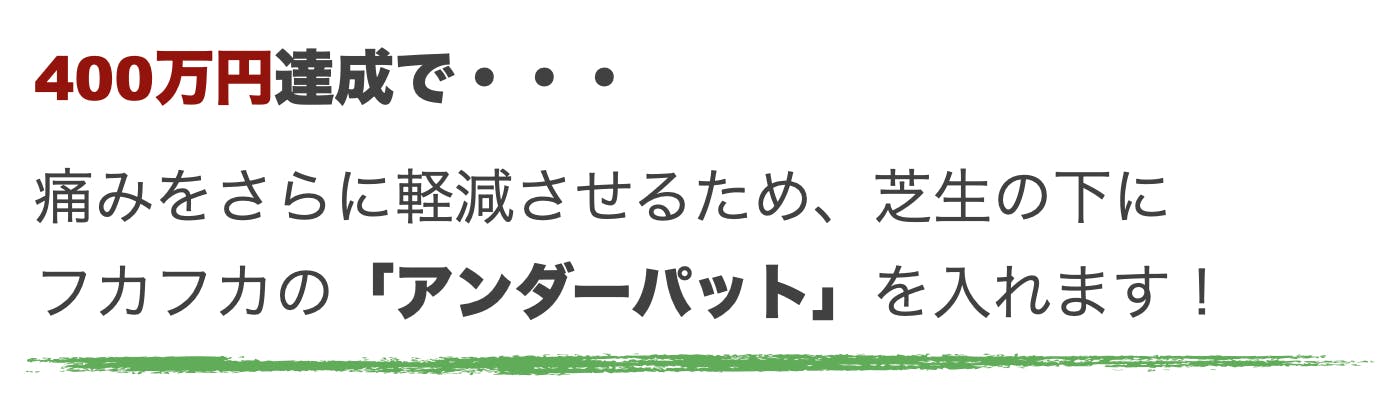 達成したら、芝の下に敷く「アンダーパット」を入れ、さらにフカフカなグラウンドにすることができます!