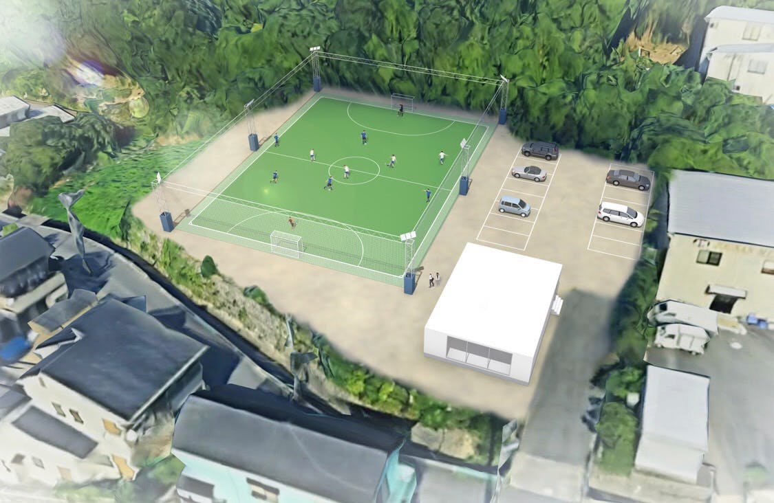 ここにさらに、人体に害のない人工芝を貼り、ライトもつくり、駐車場と建物を建設し、ゴールキーパーが快適に練習できる場所を作りたいと考えています。