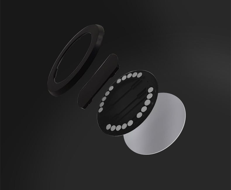 □ 超薄型3mm、わずか10g、シンプルな円形。滑らかなミニマルデザインでスマホやケースと一体化。