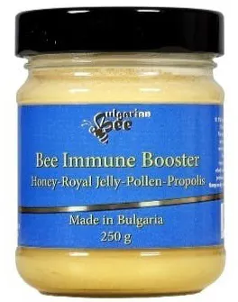 これは、ビー・イミューンブースターという商品で生はちみつ90% と、ロイヤルゼリー2% 、ビーポレン(蜂花粉)5% とプロポリス3% からできています。ブルガリアでのみ製品化に成功したとても高級で栄養価が高くミネラル豊富で免疫力を向上させると言われています。