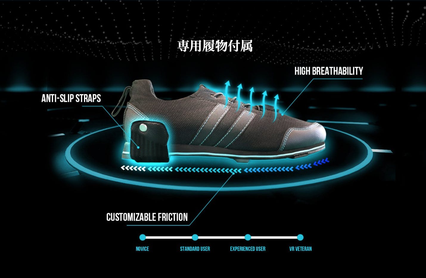 KATWALKC専用に設計されたシューズは、熟練度に応じて滑り具合を調整できてお客様の好みに合わせてカスタム出来ます。