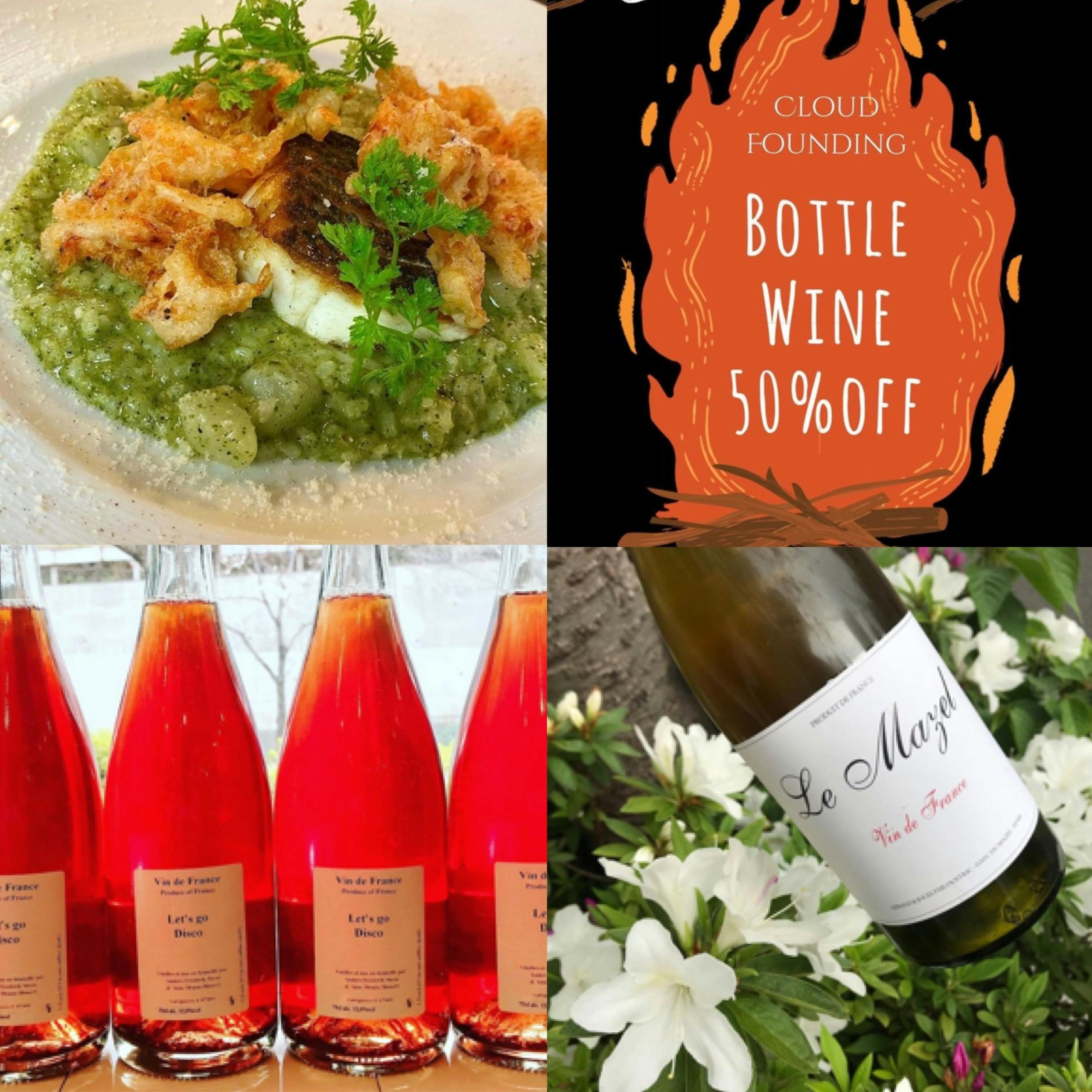 一口1万円のご支援を頂いた方に全てのボトルワインを50%offの価格でお飲みいただける特典をご用意致しました。こちらは2021年12月の最終営業日までご利用いただけます。期間中何度でも、一度のご来店で何本であっても適用させて頂きます。ボトルワインを飲んで頂ければ頂けるほどお得なリターンだと自負しております。