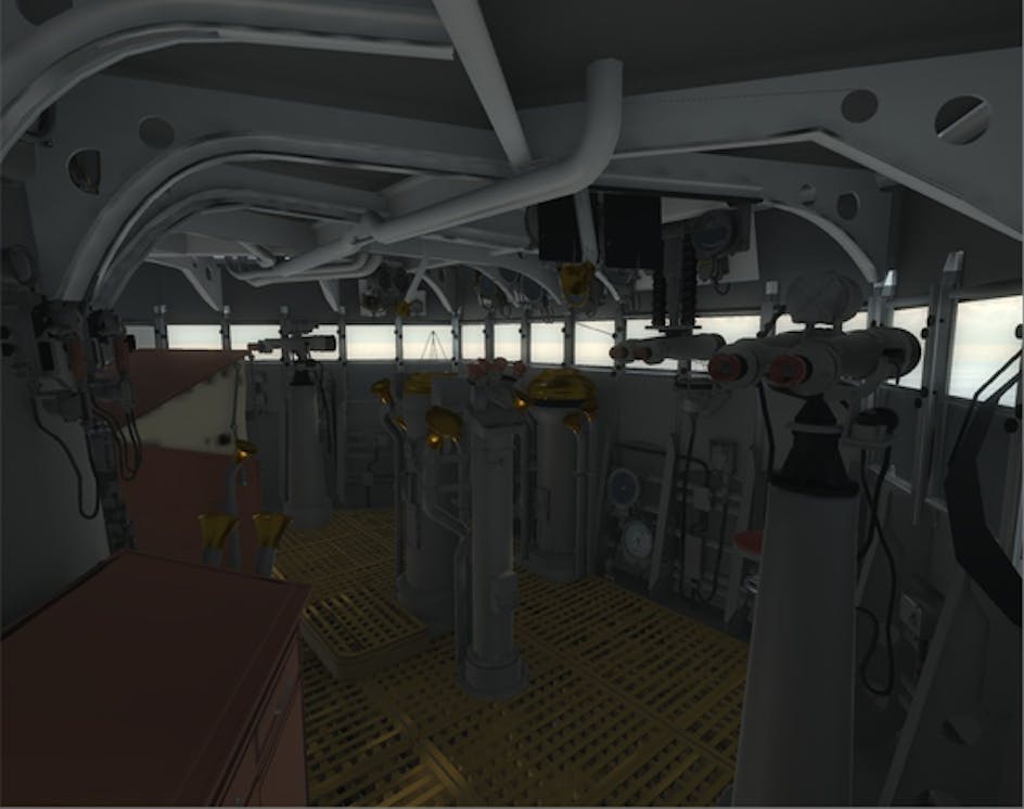 艦橋内右手の風景。見張り用の大型双眼鏡が所狭しと並んでいます。