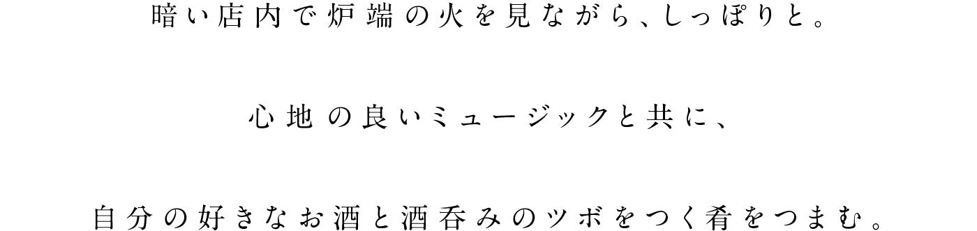 豊富な漁場をもつ釧路で過ごした子どもの頃、よく親に連れられた居酒屋の哀愁漂う空気感を今でも時々、思い出します。そんな英才教育を施された自分も酒場に通うようになり、行き着く先は、地元釧路に昔ながらにあるような、少し薄暗さを感じながらも、しっぽり飲める炉端、炉端焼き屋。