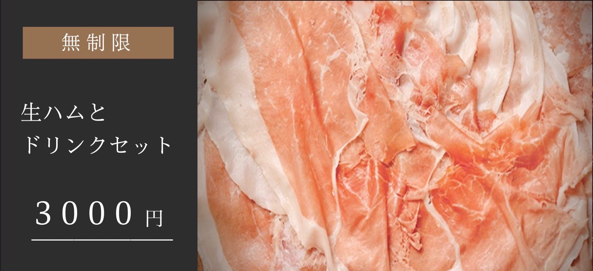薄くスライスした切りたての生ハムをそのまま食べていただきます。