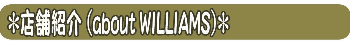 食とは直接的に関係性のないようなその場の空気感は日常の生活のちょっとしたスパイスとして活躍し日々のやる気にも繋がると思います。意外な組み合わせが気づいたら癖になり、いつのまにか日常となり、無いと物足りない物となり、生活の一部としてこの場所、ウィリアムズを成長させていきたいと思っております。