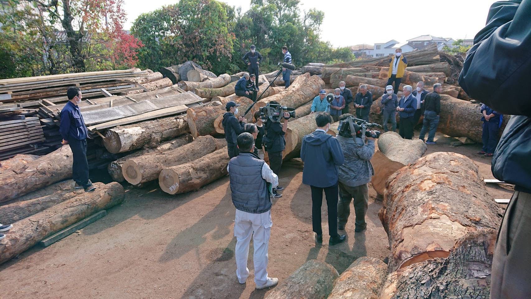 また、欅の撤去工事や大川木材市場での競りなどの際には、地元のテレビや新聞社の方が取材に来られ、神社への寄付のお願いをメディアを通じて全国にお願いすることができました。
