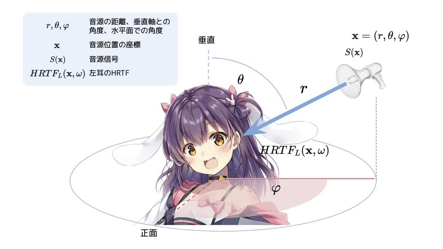 この人間の身体的特徴による音の変化を反映し、ヘッドホンで立体的な音を再現するために"HRTF(頭部伝達関数)"という音響特性が存在しており、現在も様々なコンテンツにて活用されています。