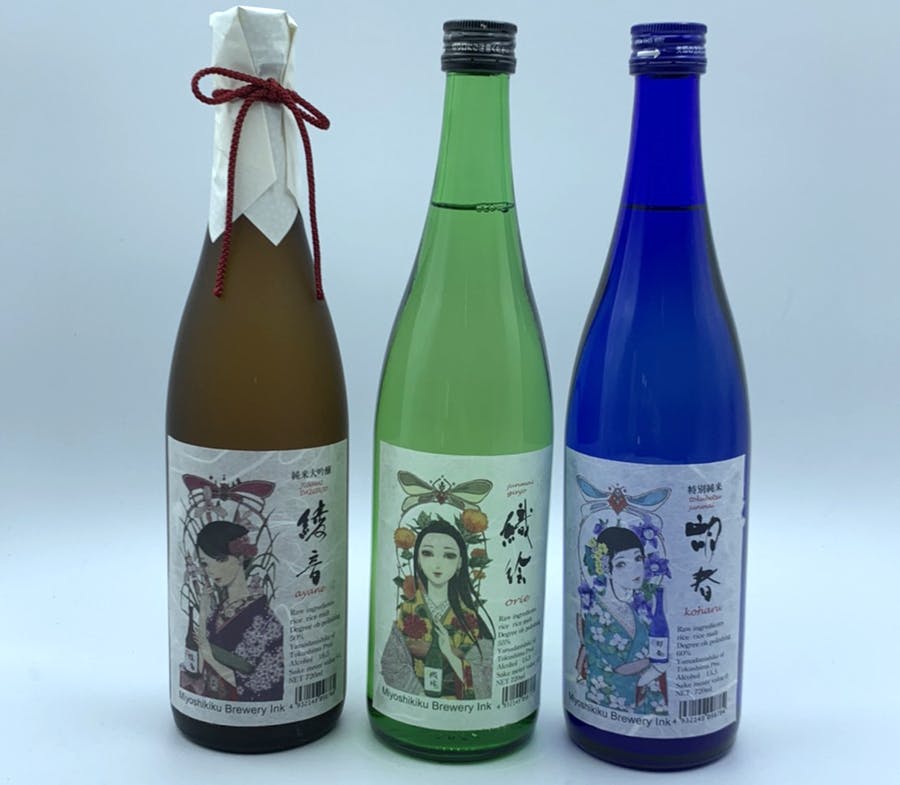 織絵:三姉妹の次女の織絵の名前の純米吟醸です。 徳島県産の山田錦を使用し精米歩合55%まで磨きました。 三本の中では比較的すっきとした飲み口で、洋食にも和食にも相性の良いお酒です。