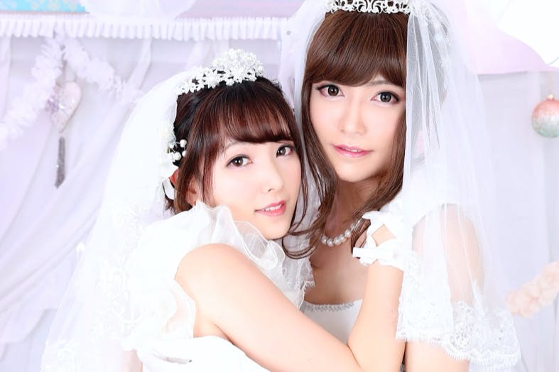 写真は女装と女子会アプリのイメージモデルを引き受けて頂いた、ゴロン族美月さん(左)と麗癒さん(右)