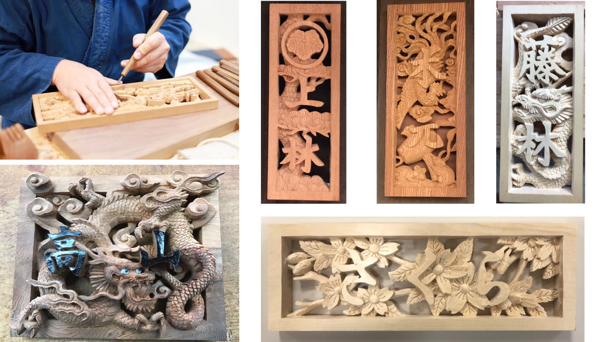 1枚の木板から立体的に表現する本格的な彫刻は躍動感や迫力があり、機械では表現できない曲線もあります。