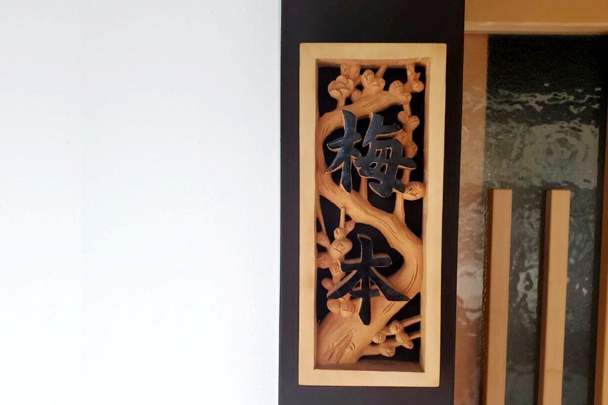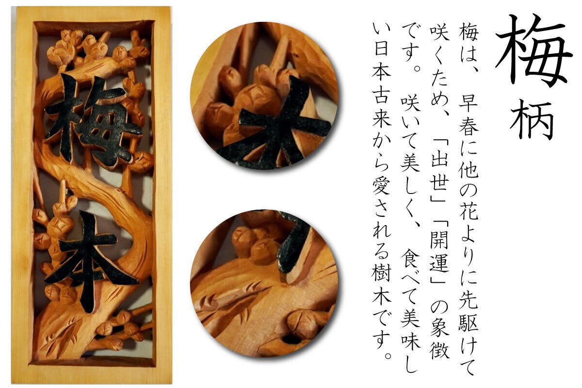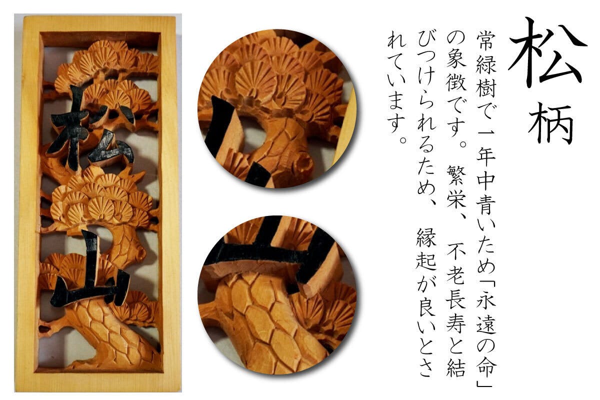 ▽「翠雲彫刻表札」 の制作事例。サイズや図柄のオーダーも可能です(要別途見積)。赤ちゃんの命名書として使われる方もいます。
