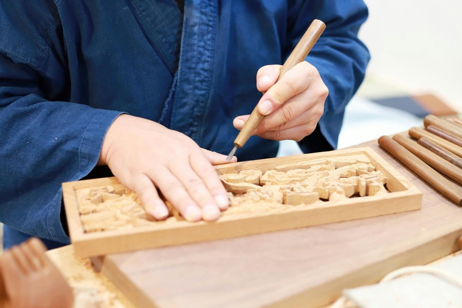 ▽若手の有志で彫刻の楽しさや技術を知っていただくために、彫刻体験イベントや新しいものづくりへのチャレンジをしています。