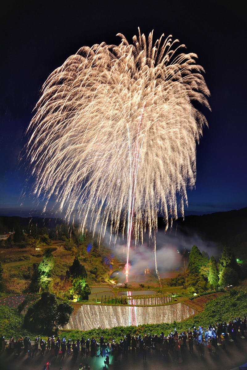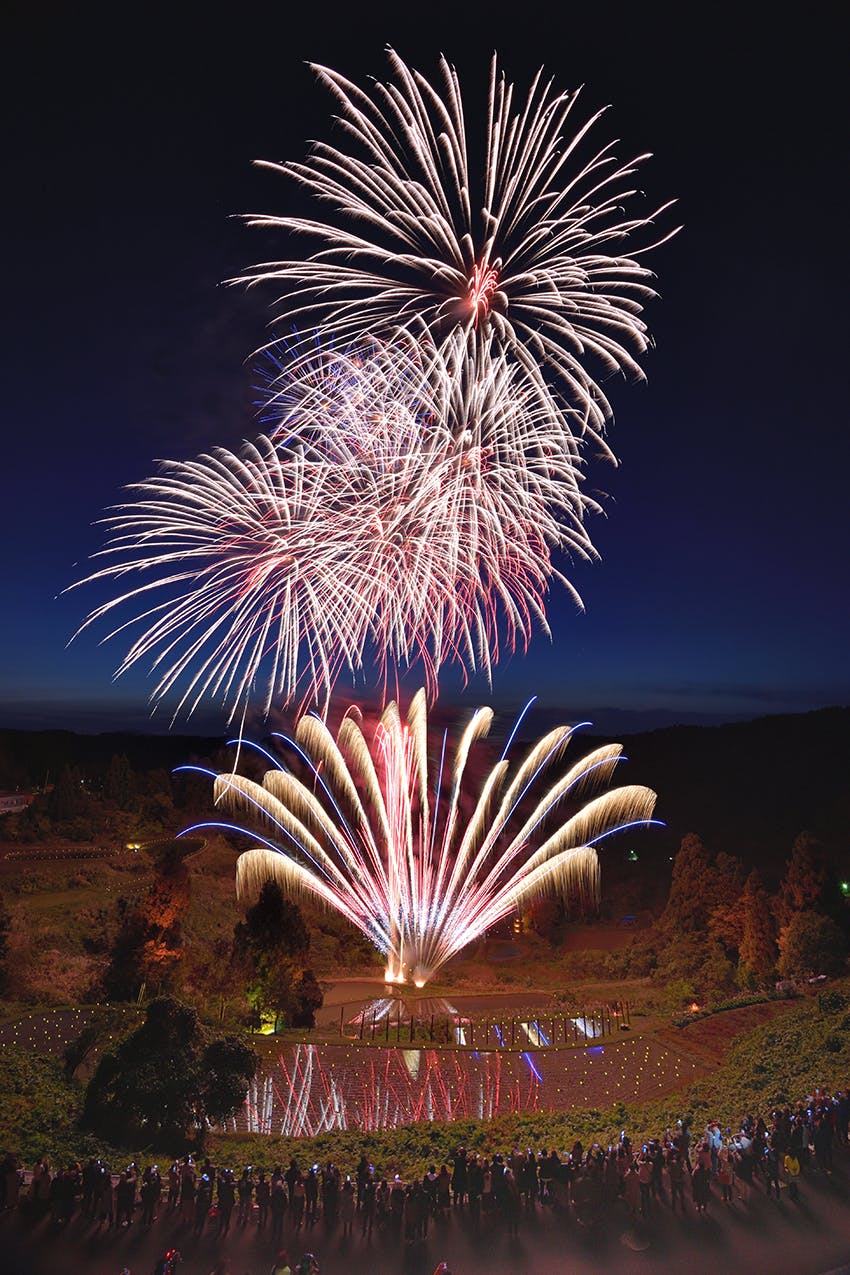 山花火と棚田・棚池に映り込む2,500個の灯りは幻想的で大変好評をいただき、山古志でしか見られないイベントとなりました。
