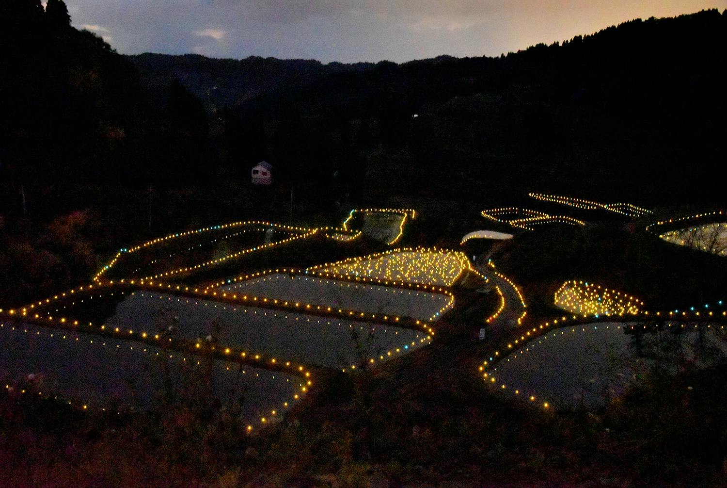 集めた資金はこの「山古志 棚田・棚池あかりのページェント」を13日間実施するための