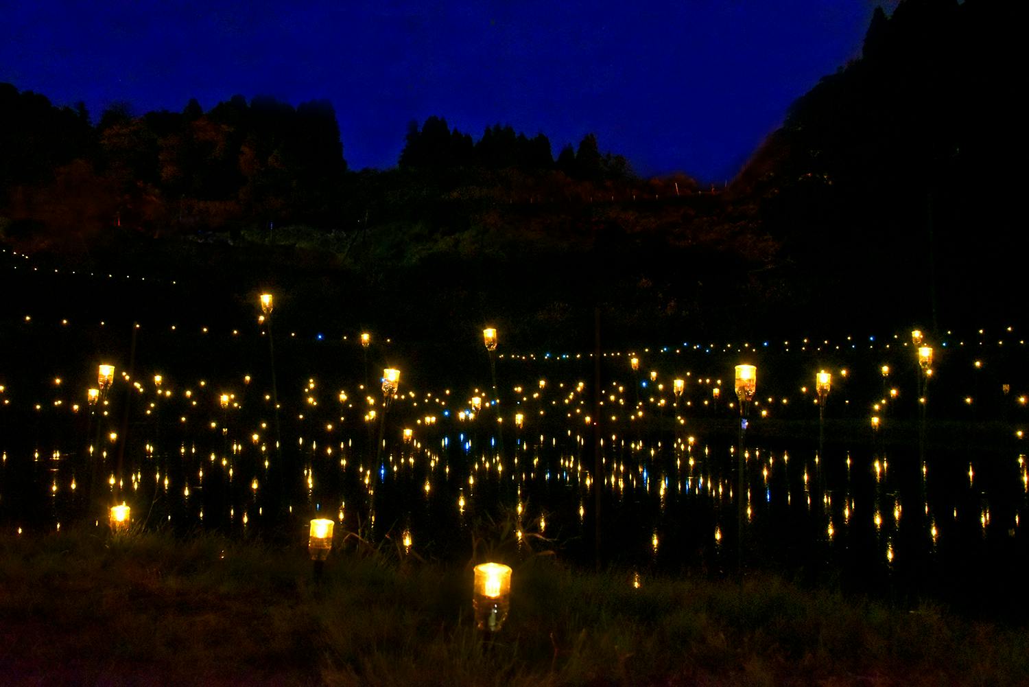山々に囲まれている棚田と鯉の暮らす棚池の灯りの美しさを感じていただけますように。