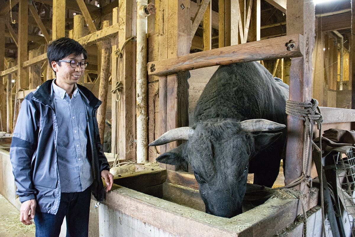 私は小さいころから家に帰ると牛がいて、畜産や闘牛の手伝いをしていました。だから、牛は私の生活の一部で自分が今ここにいるのは、牛のおかげなんです。角突きは「お互いっこ」。お互い様のことで、ひきわけが原則です。自分の牛の良さを出してくれるのは、相手の牛がいるから。勝ち負けだけではなくて、お互いの牛の良さが出て、楽しめるのが引き分けの良さ。角突きの一番良いところです。牛を大事にして、牛同士の仲を悪くしない。50対50で、お互いが生きていければ、100対0にしなくていいのです。