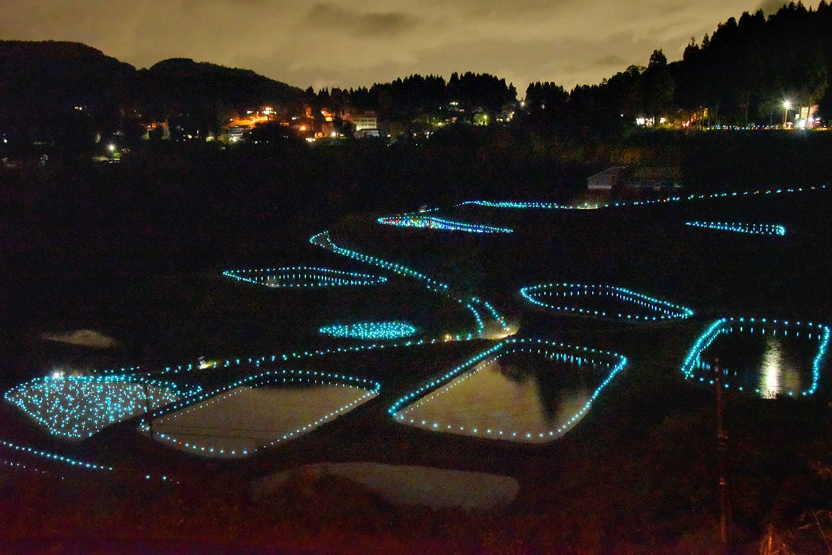 【イベント内容】 棚田・棚池ライトアップ、ライトアップウォーク、山花火、錦鯉の棚田ライトアップ、食のおもてなし