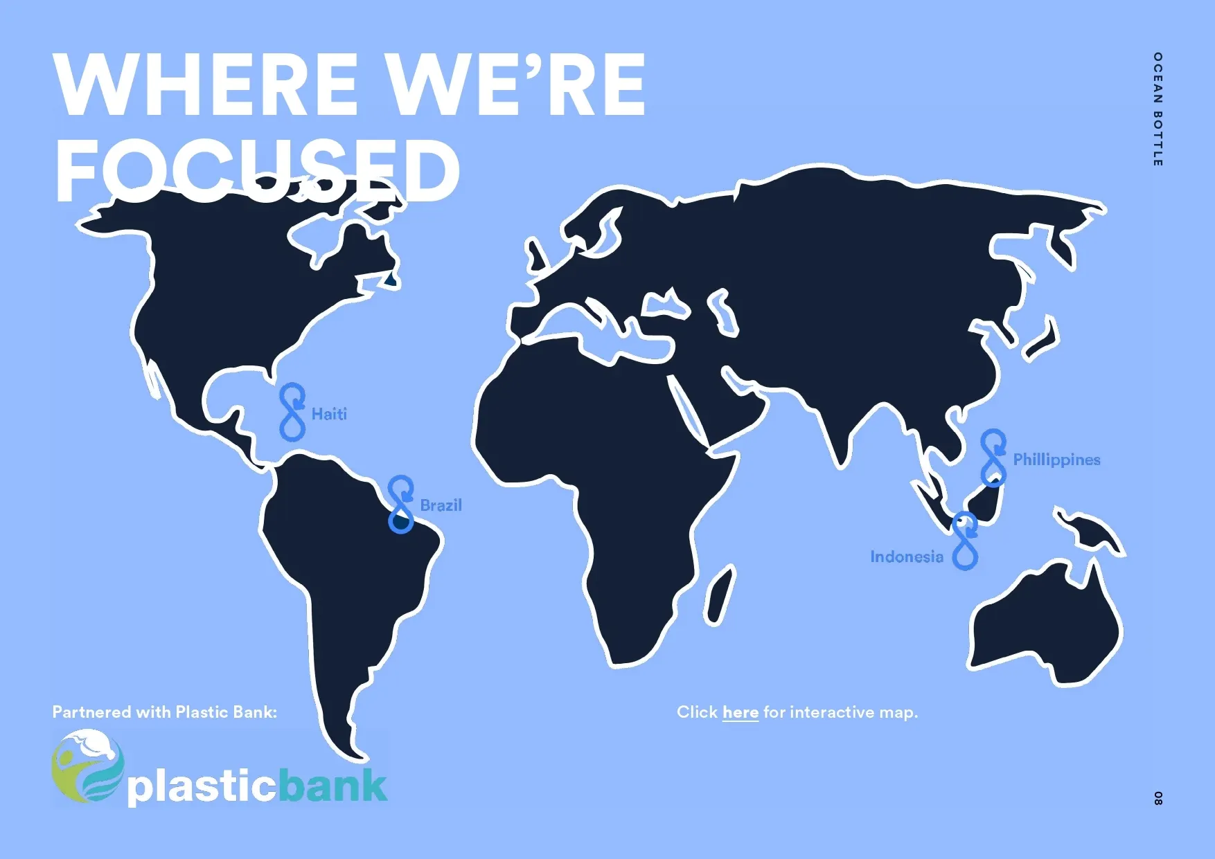 A. 全ての基金は数々の賞を受賞している私たちのパートナーであるプラスチックバンクへと送られます。基金のうち60%はプラスチックの回収者のもとへ行きます。40%は世界中で最も必要とされる場所にプラスチック回収のためのインフラを整備することに使われます。