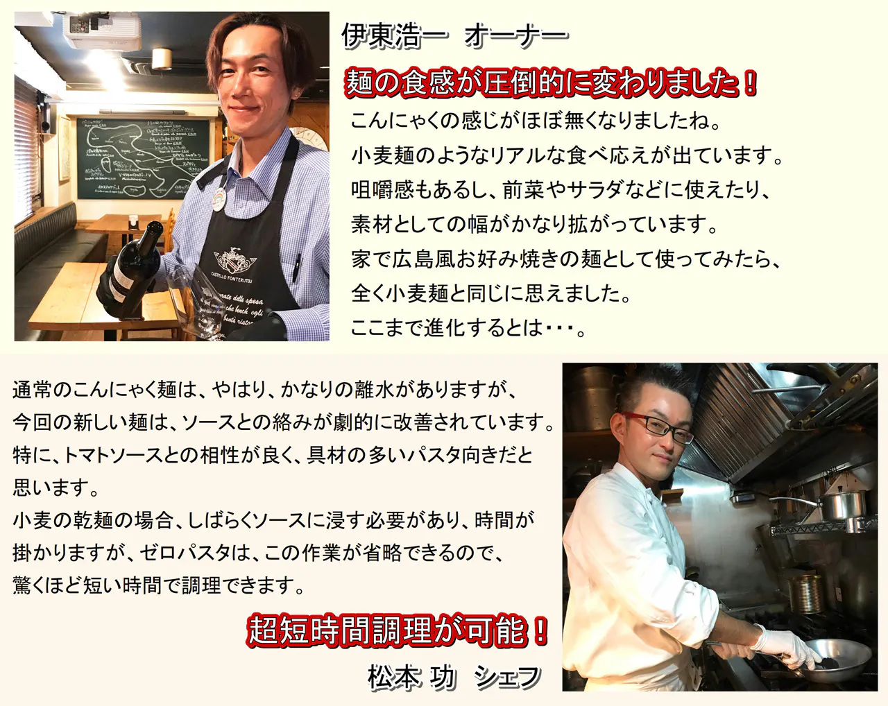 「ゼロパスタ」は、現在、和洋中の有名飲食店などで続々と採用されていますが、その麺の食感を更に高める為に、原材料の見直しと改良を重ねた大幅なリニューアルを予定しています!!!