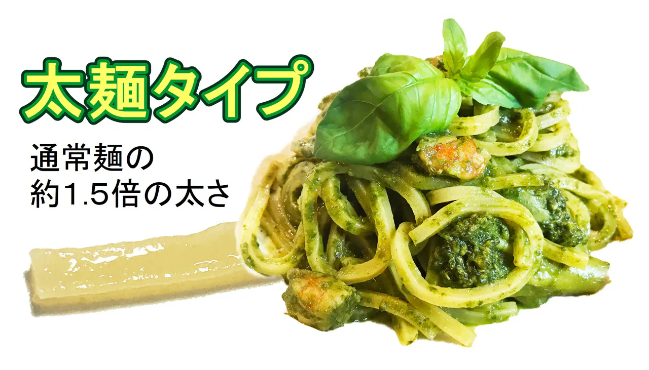 「太麺タイプ」のもちもち食感をお楽しみください!