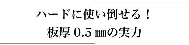 前述の黒酸化発色加工された肉厚なステンレスを使うことにより、直火に掛けても、ハードに使っても、変形し難い、ステンレスの重厚感を感じる質感を作り出しています。