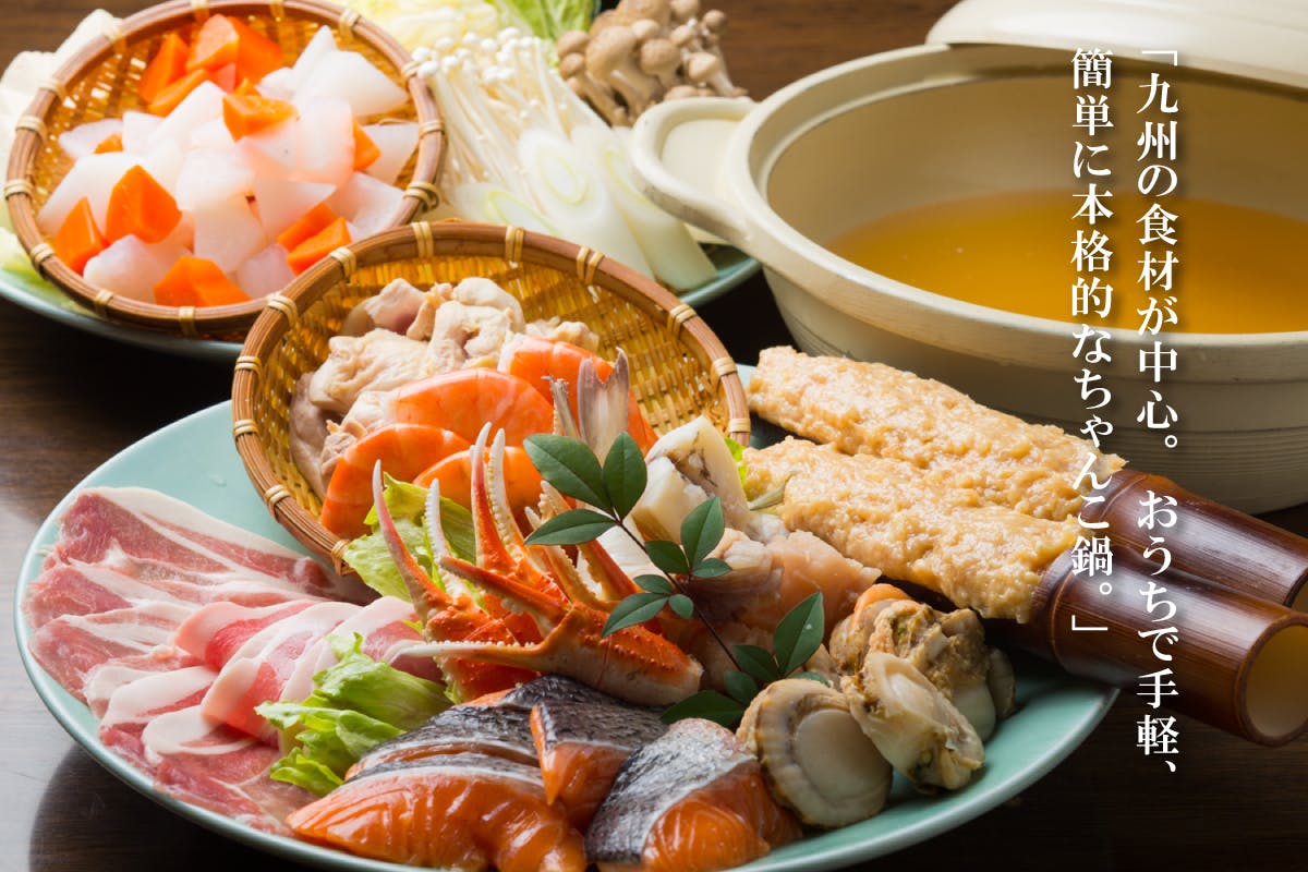 原材料:はかた地鶏り、豚肉、つみれ、白菜、大根、人参、青菜、サーモン、あんこう、揚げ、しめじ、えのき、ねぎ、麺、ゆず胡椒、出汁(薄口醤油(原材料の一部に、小麦、大豆、保存料を含む)、濃口醤油(原材料の一部に、小麦、大豆、保存料を含む)、酒、みりん(原材料の一部に米、米麹、食塩)、中華スープの素(食塩、畜肉エキス、野菜エキス、動物油脂、植物油脂、砂糖、乳糖、小麦粉、香辛料(一部に小麦、乳成分、牛肉、ゴマ、ゼラチン、大豆、鶏肉、豚肉を含む)、貝柱のだし(食塩、ホタテエキス、煮干貝柱粉末))、