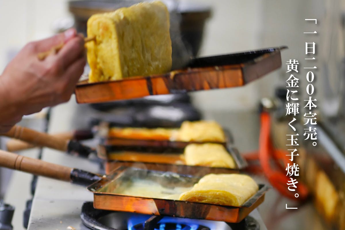 名物玉子焼き。毎日200本売れる黄金の玉子焼きです。1本1本手で巻いています。